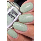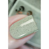 Paloma is a dusty sage green nail polish with fine black specks. Our speckled polishes are made with irregular-shaped flake pigments which gives it a unique, spotted finish.