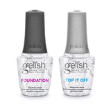 The Gelish Dynamic Duo is the perfect basix kit for the perfect gel manicure! Foundation creates the adhesion bond between the nail plate and gel products without damaging the nail plate. LED Cured. Top It Off seals your Gelish Soak-off polish with a high shine finish that will not dull, chip or peel.