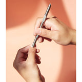 Ergonomic cuticle pusher + reducer features ultra-fine diamond particles adhered to the stainless steel base at two angles and lengths. It reduces and exfoliates unwanted and excess cuticles that cover nail bed, smoothing uneven ridges with ease.