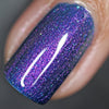 Come Sip With Us is a teal-leaning slate blue nail polish with color-shifting shimmer and micro holo sparkle. The rosy pink shimmer shifts to copper and peach, and at some angles, gold and green. Indirect lighting reveals lavender and fuchsia tones. This complex polish is best worn in two-to-three coats.