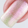 Kassidy is that little dose of EXTRA we all needed. This sheer shimmery polish has pink and gold microflakies running throughout. Wear it on its own for a barely-there unicorn look, or layer her over any color. You will not be disappointed.