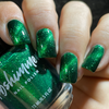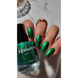 Crushing It is a green magnetic nail polish inspired by crushed velvet. A deep forest green base is complemented by a vibrant green magnetic pigment, ideal for the "velvet" manicure look. It can also be worn in traditional magnetic styles or without the magnet for a bright green metallic effect. For a β€œvelvet” look, hover the paddle end of a magnet on either side of your nail to push the pigment to the center. Two coats will offer full coverage for most.