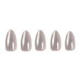 Sparkle and shine this season with the Oslo nail set! A gorgeous and viral-worthy icy, silver cats-eye design catches the light and glimmers like no other, for the holiday gift that keeps on giving! Plus, you can never go wrong with our most popular short-almond shape to take you from day to night.