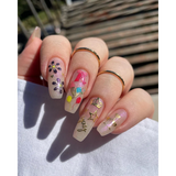 Nail art just got way easier. These tiny stickers were made to be easy to remove from their sheets and press right onto your nails. They can be applied to gelled, polishes, or natural nails, just make sure that whatever surface you're putting them on is dry.