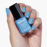 Start with any kur base coat. Once the first layer has dried, apply 1-2 coats of lakur as needed. Let each layer of lakur fully dry for 2-3 minutes before applying the next layer, then seal with any kur top coat. To expedite the drying process, apply 1-2 drops of Accelerating Drying Oil at the cuticle and allow the oil to run to the free edge of the nail.